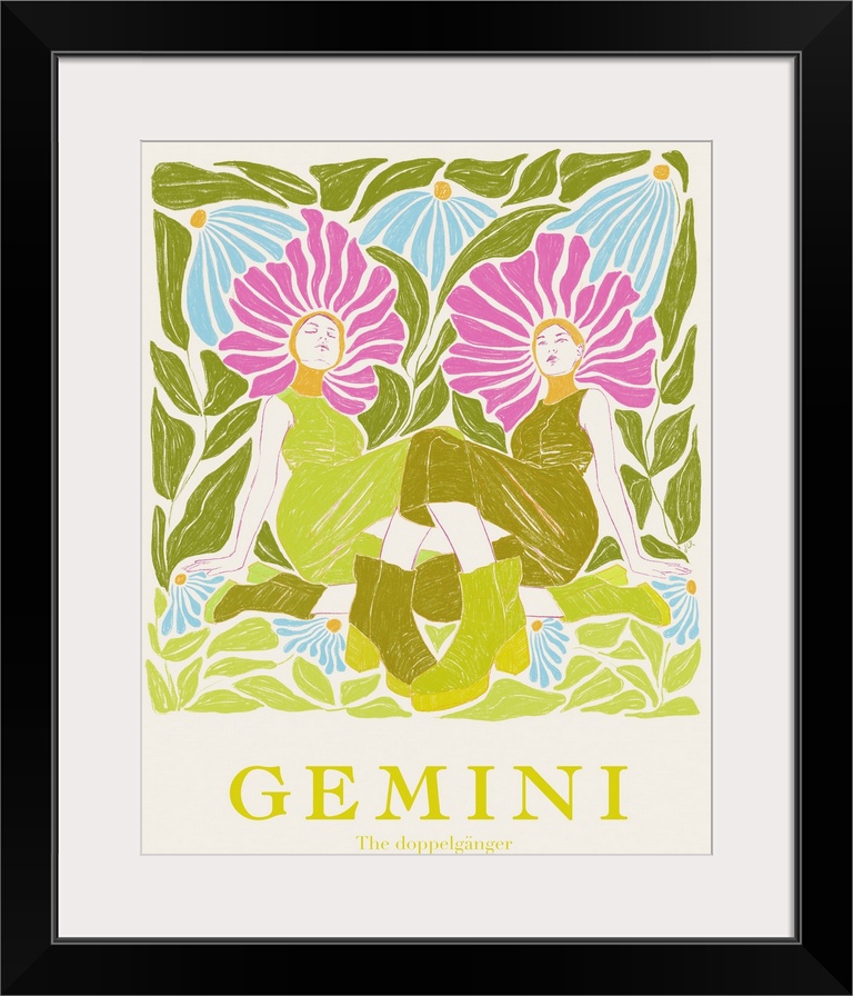 Art Astrology College Dorm Décor Contemporary Art Art For Your Zodiac Gemini Drawing Florals Green Wall Art People Figurative Jenny Liz Rome