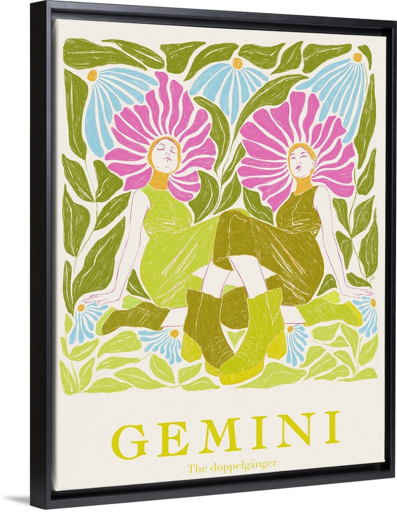 Art Astrology College Dorm Décor Contemporary Art Art For Your Zodiac Gemini Drawing Florals Green Wall Art People Figurative Jenny Liz Rome
