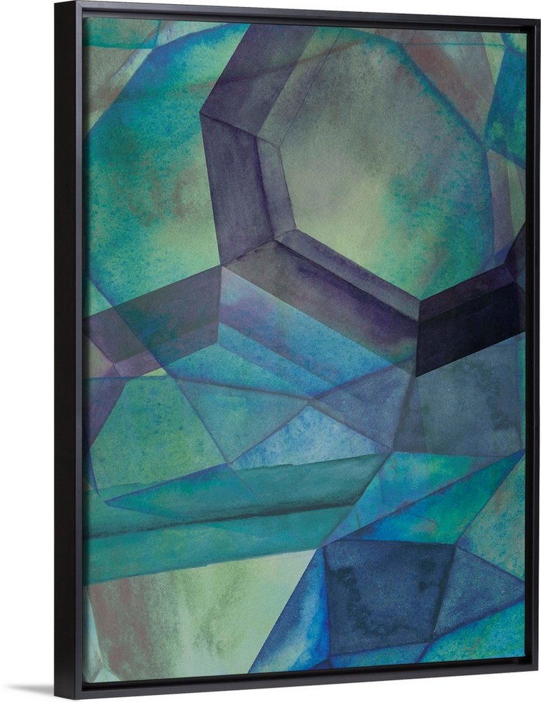<p>Contemporary home decor artwork of geometric shapes in green sea-like tones.</p>