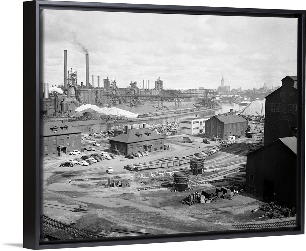 <p>7/29/1952- Cleveland, OH - General view of the Republic Steel Co. in Cleveland's Cuyahoga River Valley. Photo was made looking north west with the terminal tower in the far background at right.</p>