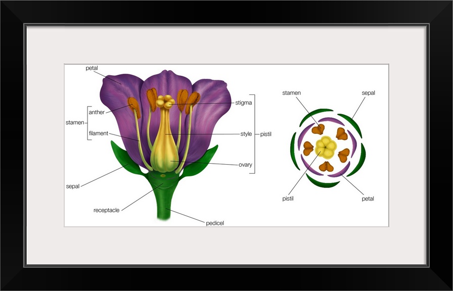 <p>Generalized Flower. Diagram On Right Shows Arrangement Of Floral Parts In Cross Section At The Flower'S Base. Plants, Botony</p>