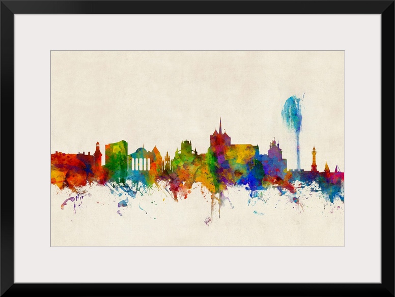 <p>Watercolor art print of the skyline of Geneva, Switzerland</p>