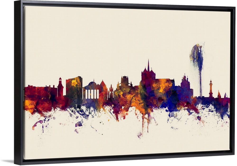 <p>Watercolor art print of the skyline of Geneva, Switzerland</p>
