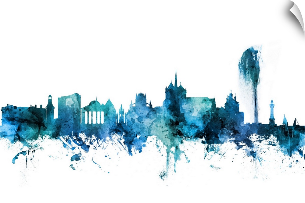 <p>Watercolor art print of the skyline of Geneva, Switzerland.</p>