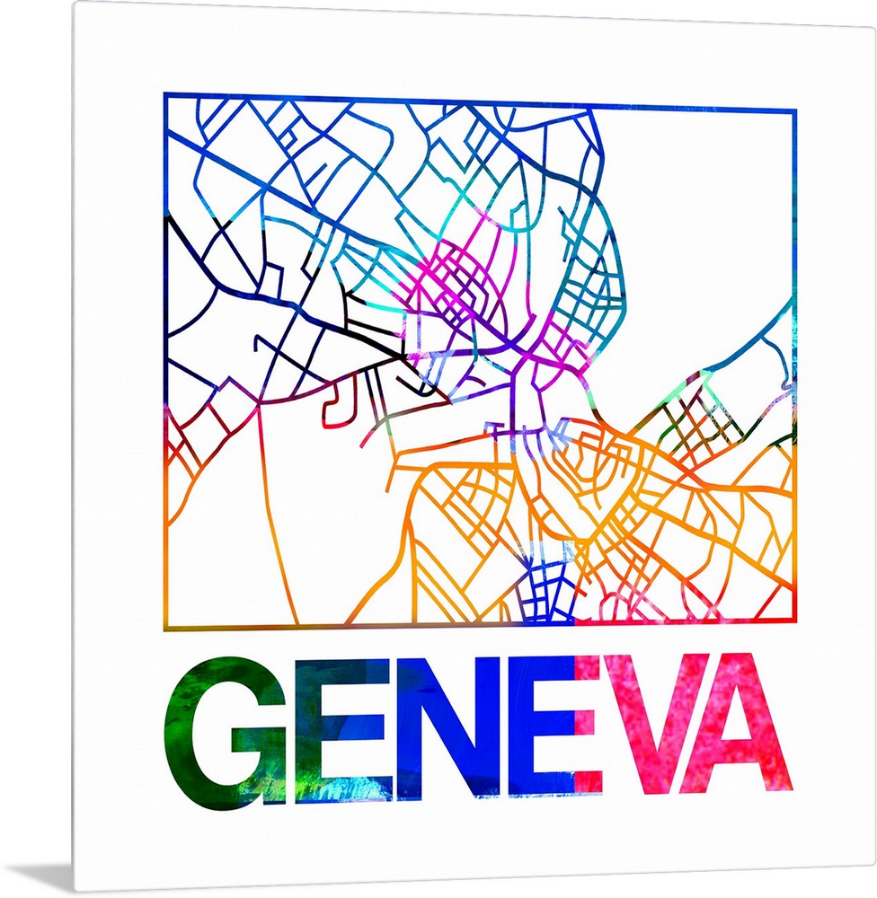 <p>Colorful map of the streets of Geneva, Switzerland.</p>