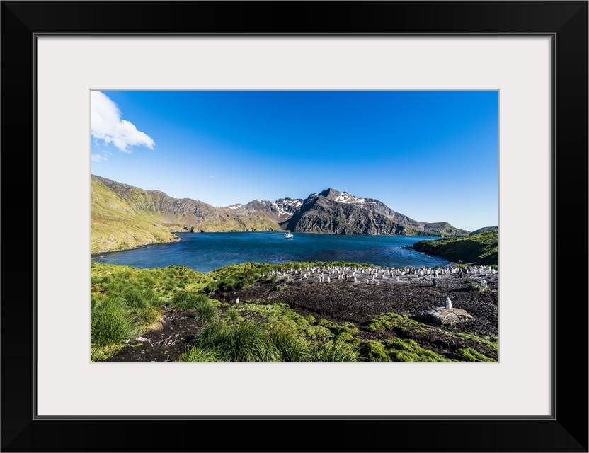 <p>Gentoo penguin colony in the bay of Godthul, South Georgia, Antarctica, Polar Regions</p>