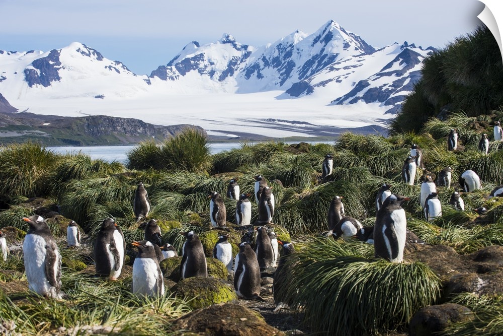 <p>Gentoo penguin (Pygoscelis papua) colony, Prion Island, South Georgia, Antarctica, Polar Regions</p>