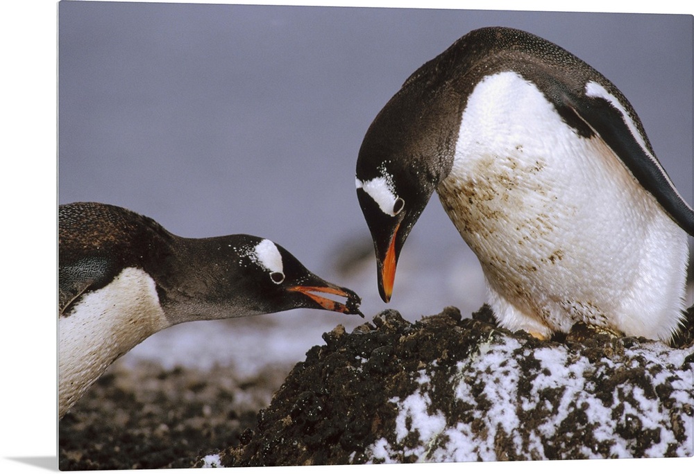 <p>Gentoo Penguin (Pygoscelis papua) nesting adults rebuild pebble nest, Aitcho Island, South Shetland Islands, Antarctica</p>
