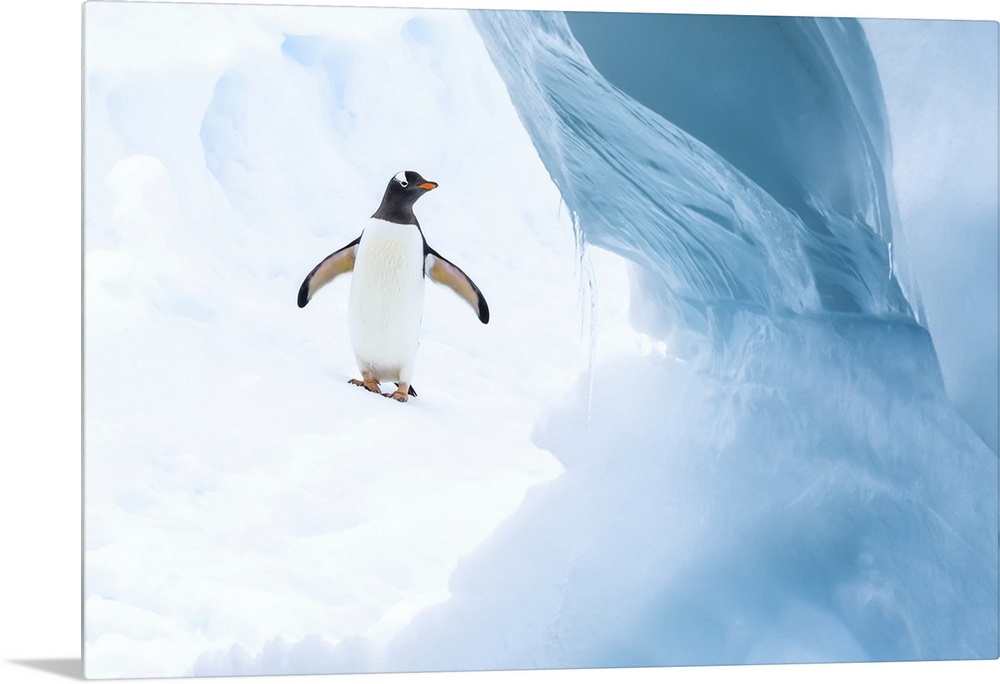 <p>A Gentoo Penguin walks on an Iceberg on Cuverville Island in the Gerlach Strait, Antarctica.</p>