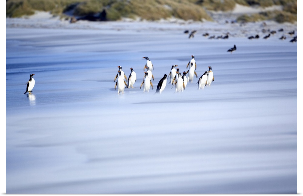 <p>Gentoo penguins (Pygocelis papua papua) on the beach, Sea Lion Island, Falkland Islands, South Atlantic, South America</p>