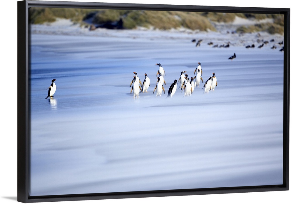 <p>Gentoo penguins (Pygocelis papua papua) on the beach, Sea Lion Island, Falkland Islands, South Atlantic, South America</p>
