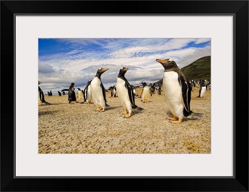 <p>Gentoo penguins (Pygoscelis papua), The Neck; Saunder's Island, Faulkland Islands</p>