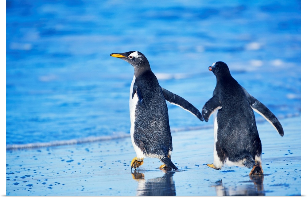 <p>Gentoo penguins walking together, Sea Lion Island, Falkland Islands.</p>
