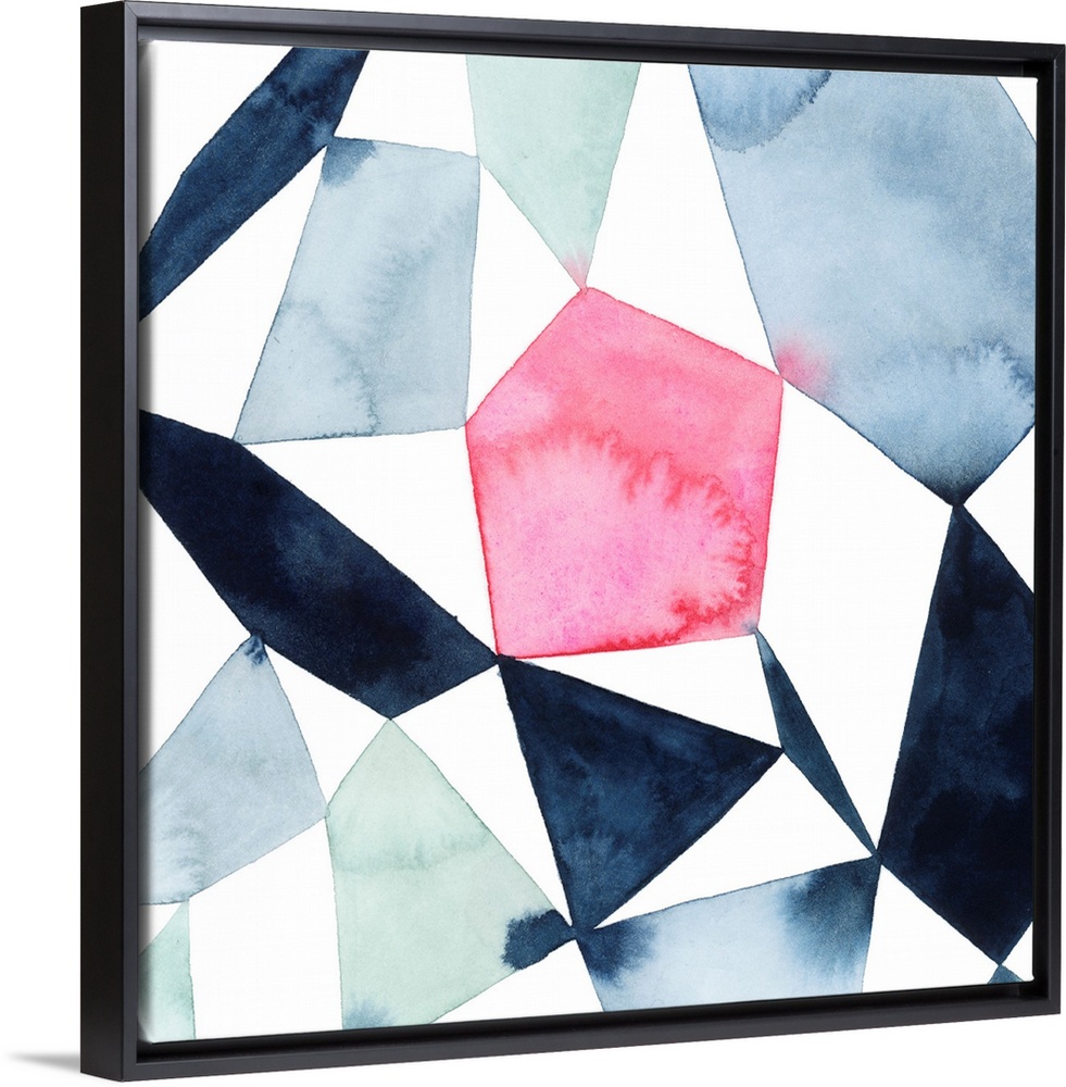 <p>Modern watercolor painting of blended colors in geometric shapes connecting on a white background.</p>