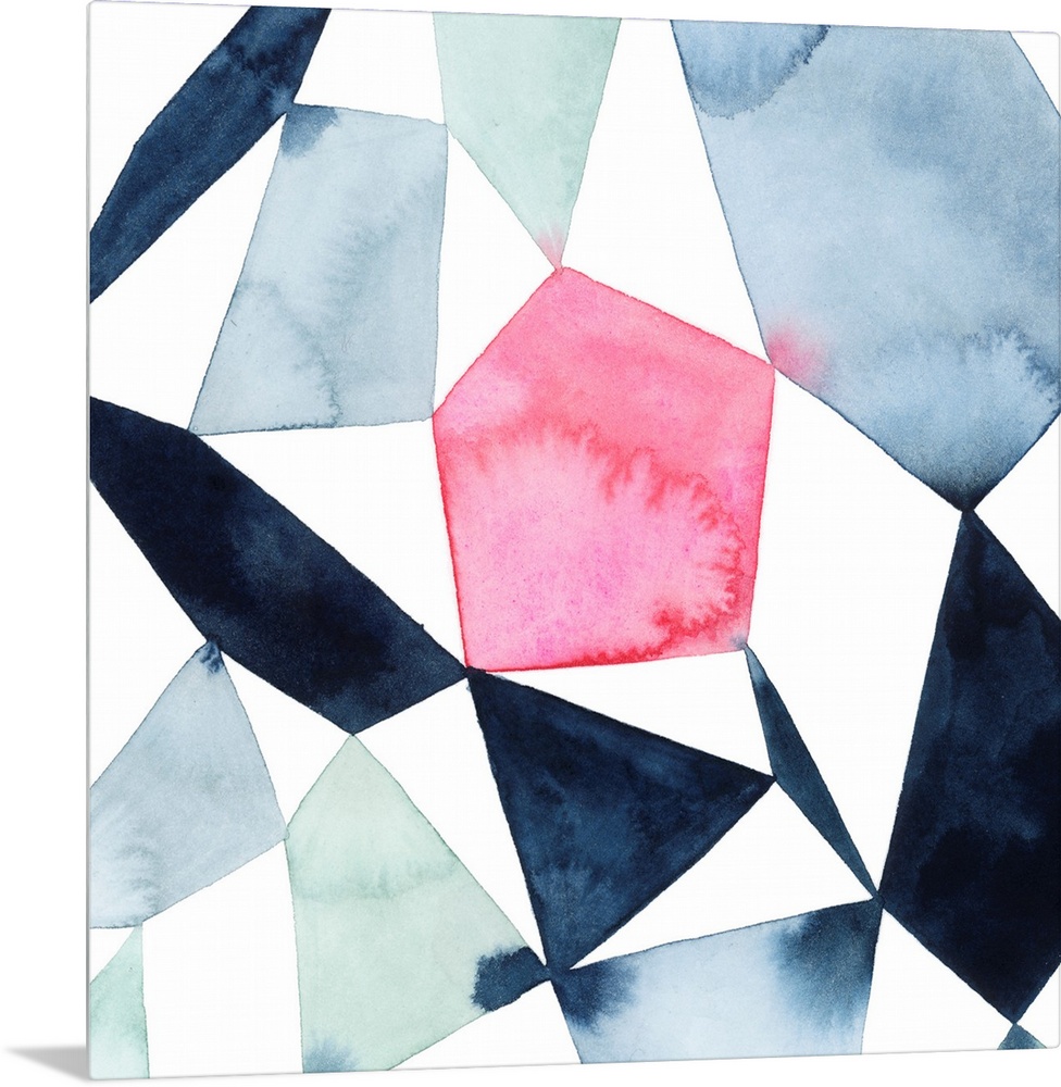 <p>Modern watercolor painting of blended colors in geometric shapes connecting on a white background.</p>