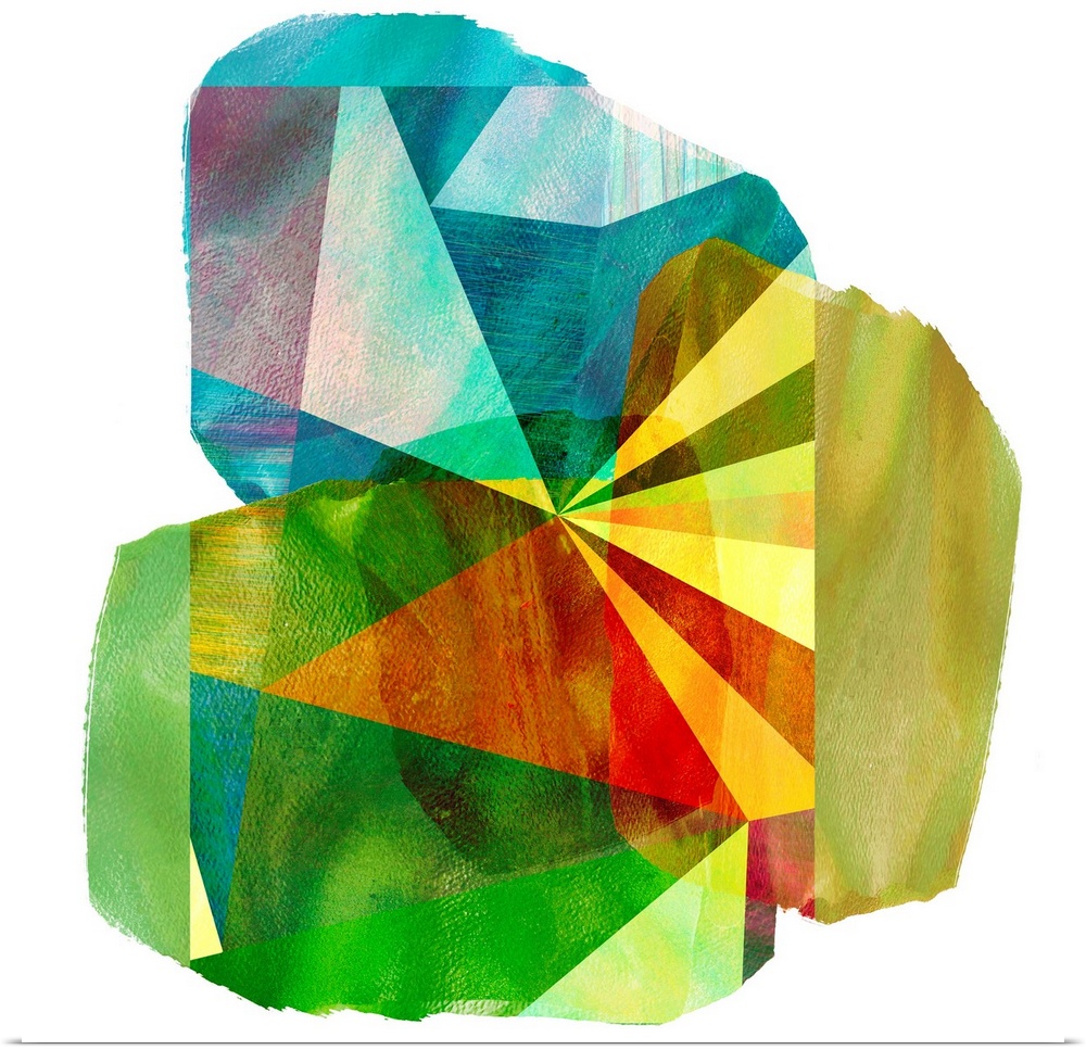 <p>Geometric artwork of colorful organic shapes and radiating lines on white.</p>