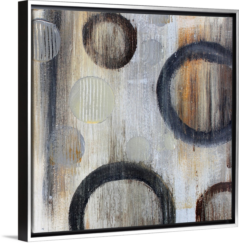 <p>Abstract artwork of circle floating against a gray background with an overall grungy look.</p>