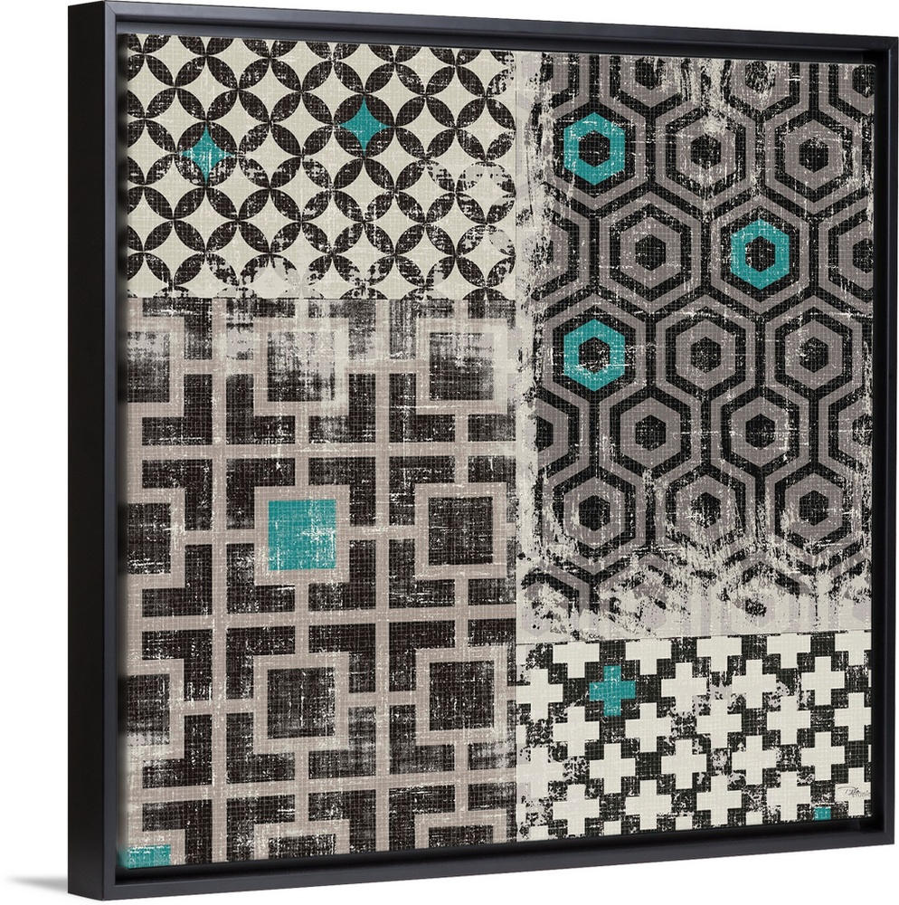 <p>Contemporary artwork of different dark colored patterns, with an overall weathered and texture look.</p>