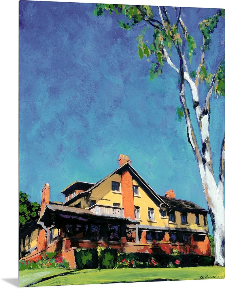 <p>George Marston House with the giant eucalyptus tree, painting by San Diego artist RD Riccoboni. The Marston House Museum is one of San Diego's finest examples of the Arts and Crafts movement and was constructed in 1905 for George W. Marston and his wife, Anna Gunn Marston. George Marston is noted for many things but most prominently as a civic leader whose interest and work in historic preservation, conservation and history is renowned. A National Historic Landmark, George Marston House and its spectacular gardens are operated by SOHO, Save Our Heritage Organisation, and open to the public.</p>