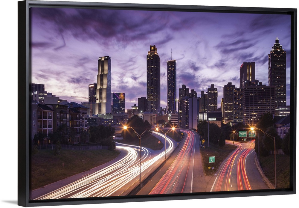 <p>USA, Georgia, Atlanta, city skyline from Interstate 20, dusk</p>