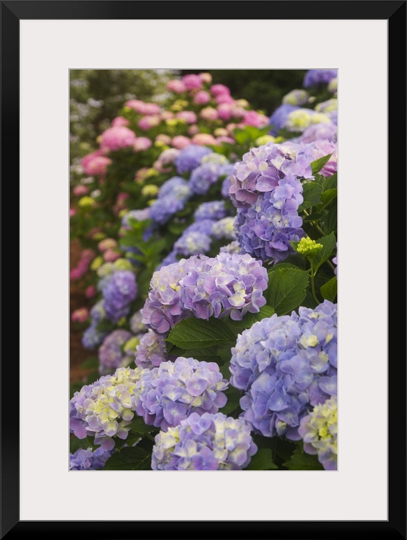 <p>USA; Georgia; Hydrangeas blooming in a Savannah garden.</p>