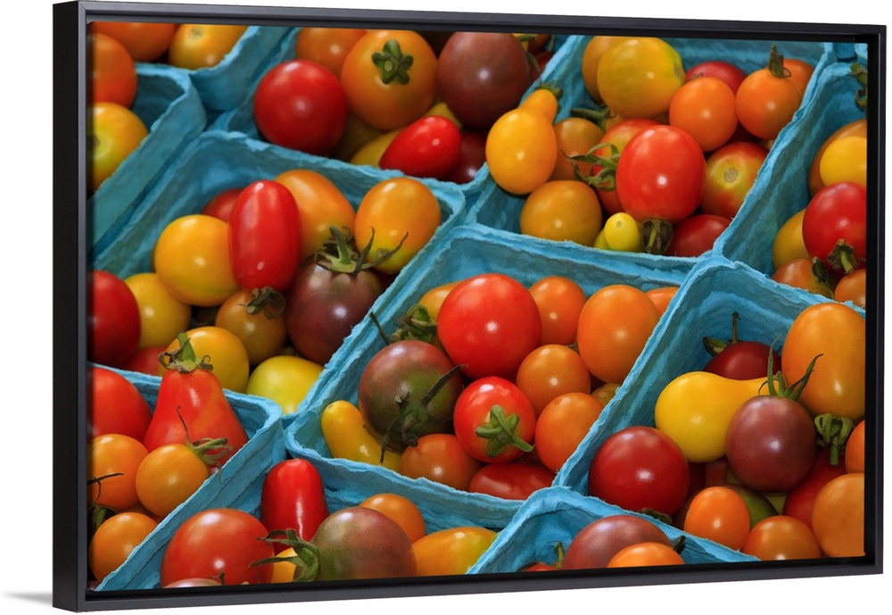 <p>USA, Georgia, Savannah, Cherry tomatoes at a farmer's market in Savannah.</p>