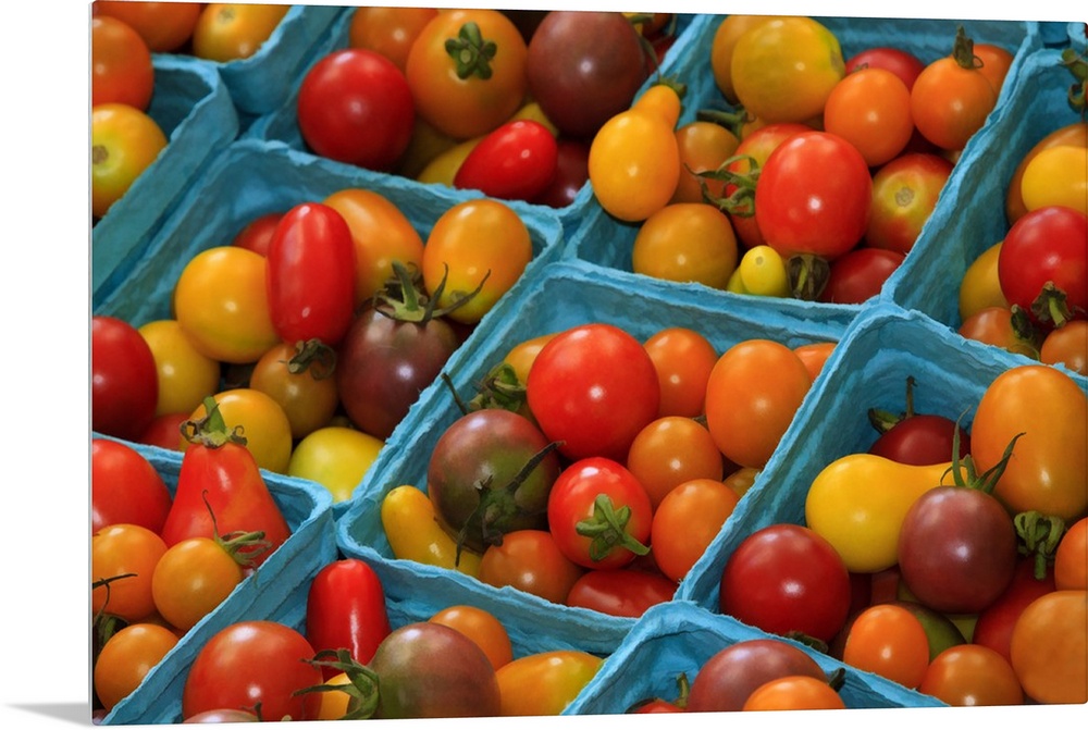 <p>USA, Georgia, Savannah, Cherry tomatoes at a farmer's market in Savannah.</p>