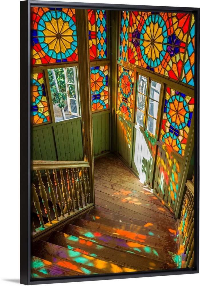 <p>Georgia, Tbilisi, Old Town, traditional Georgian building with stained-glass staircase.</p>