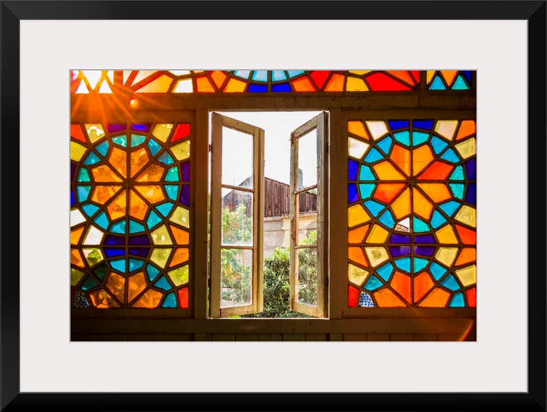 <p>Georgia, Tbilisi, Old Town, traditional Georgian building with stained-glass staircase.</p>