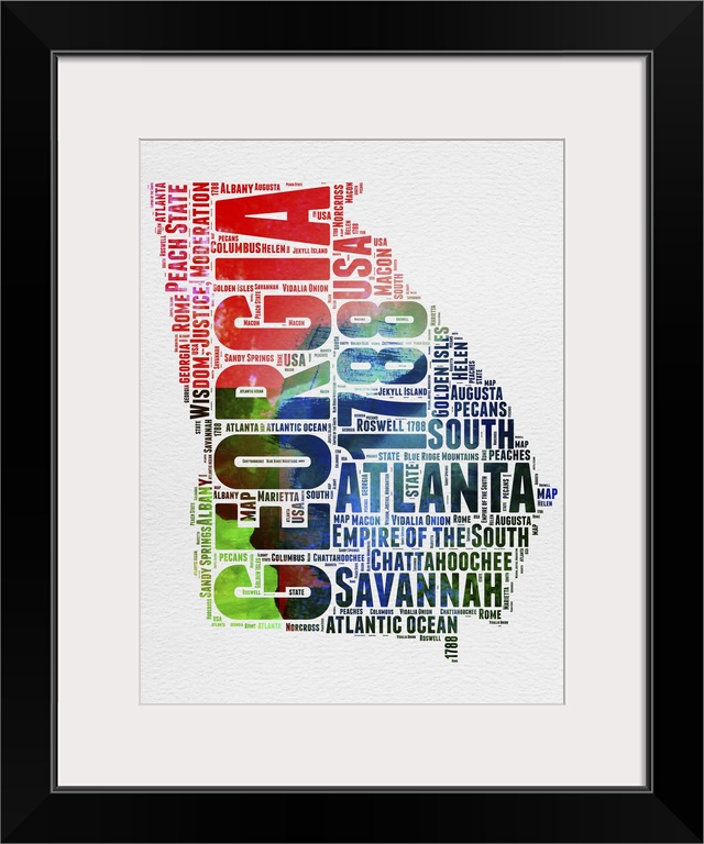 <p>Watercolor typography art map of the US state Georgia.</p>