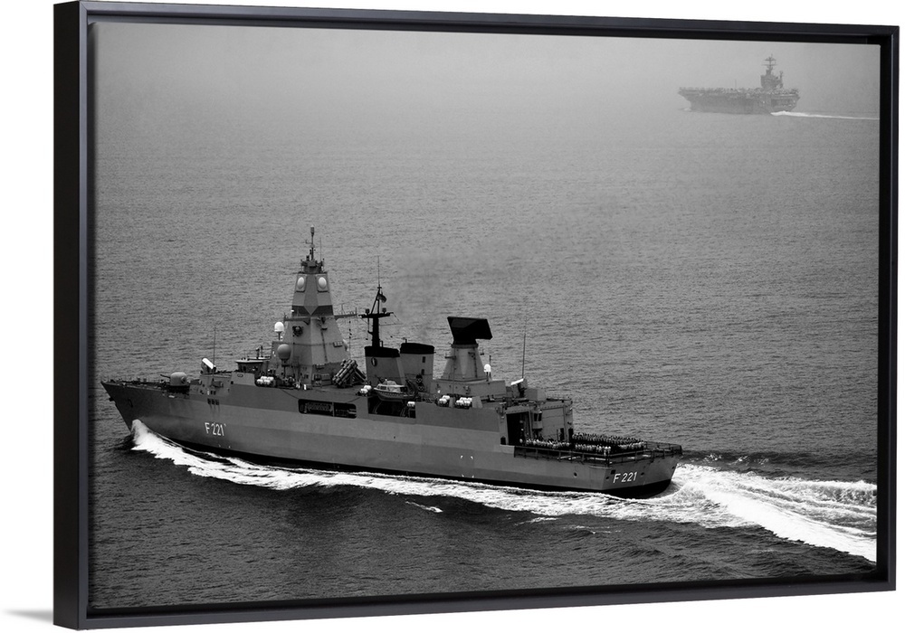 <p>German navy frigate FGS Hessen cruises alongside USS Harry S. Truman.</p>