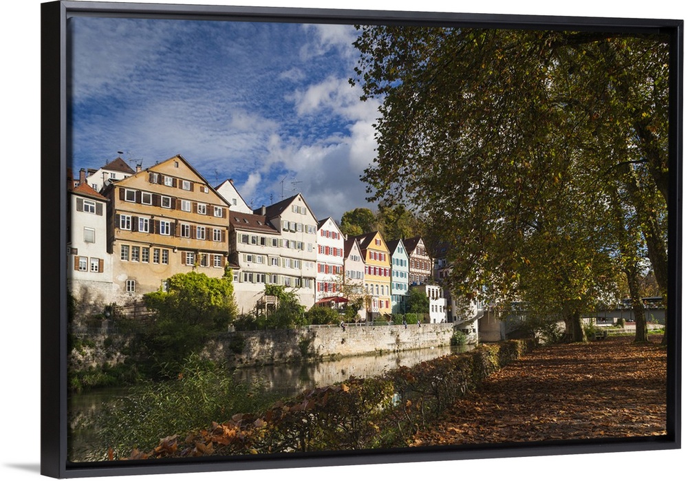 <p>Germany, Baden-Wurttemburg, Tubingen, old town buildings along the Neckar River.</p>