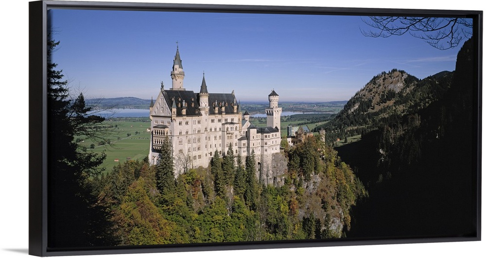 <p>A landscape photograph of an elegant caste build on top of a steep, tree covered hill.</p>