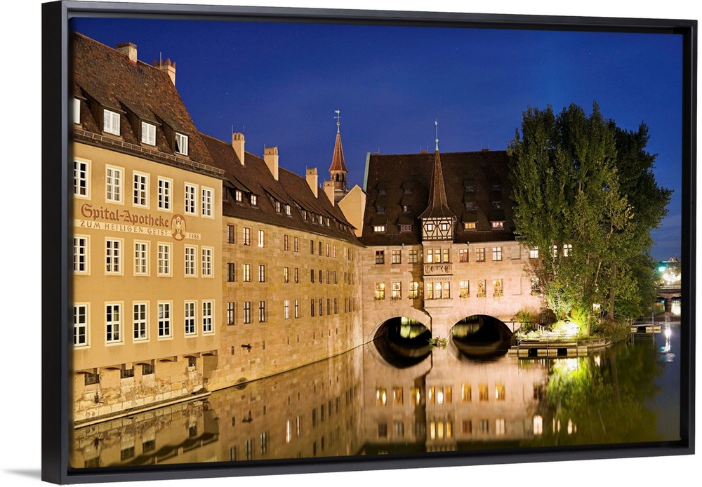 <p>Germany, Bavaria, Middle Franconia, Nuremberg, Heilig-Geist-Spital (Hospital of the Holy Spirit) and Pegnitz river</p>