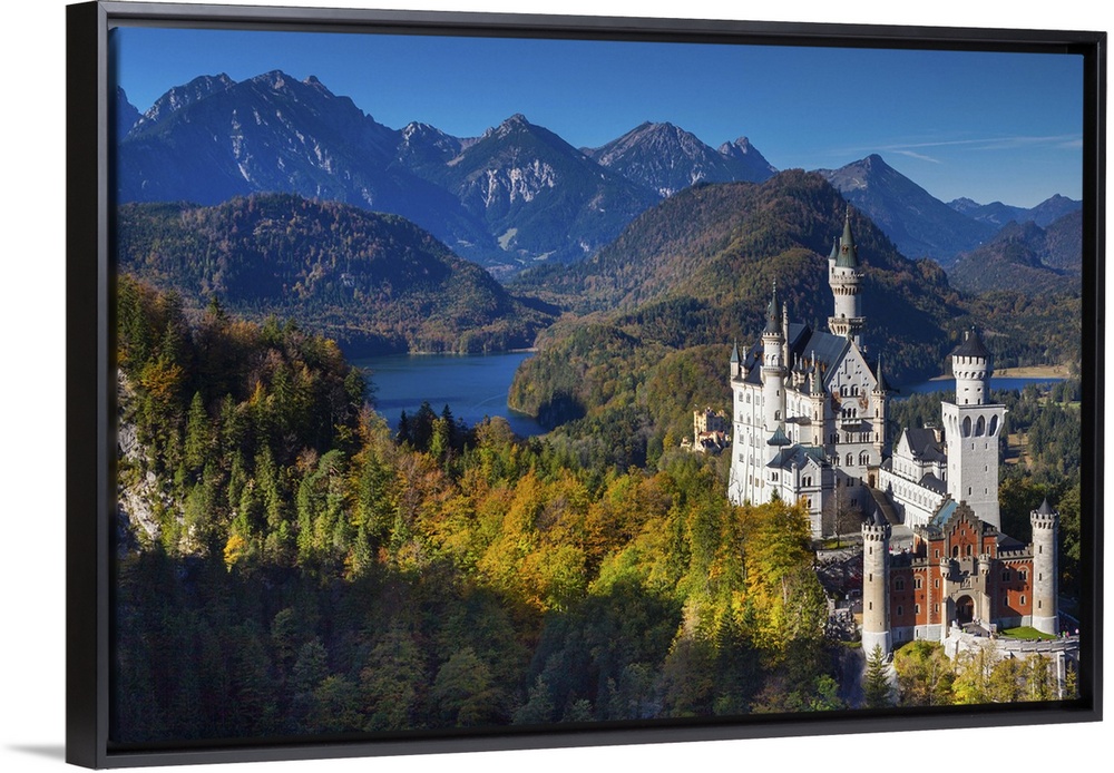 <p>Germany, Bavaria, Hohenschwangau, Schloss Neuschwanstein castle, elevated view, fall.</p>