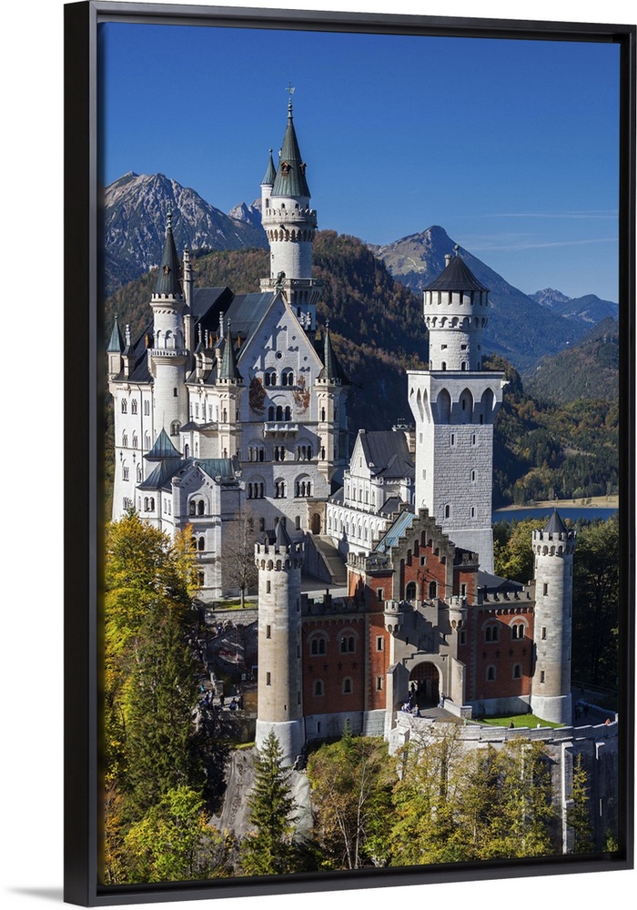 <p>Germany, Bavaria, Hohenschwangau, Schloss Neuschwanstein castle, elevated view, fall.</p>