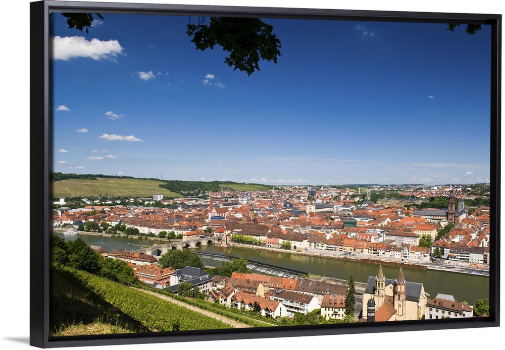 <p>GERMANY, Bavaria, Bayern, Wurzburg. View from Festung Marienberg fortress with St. Burkard church.</p>