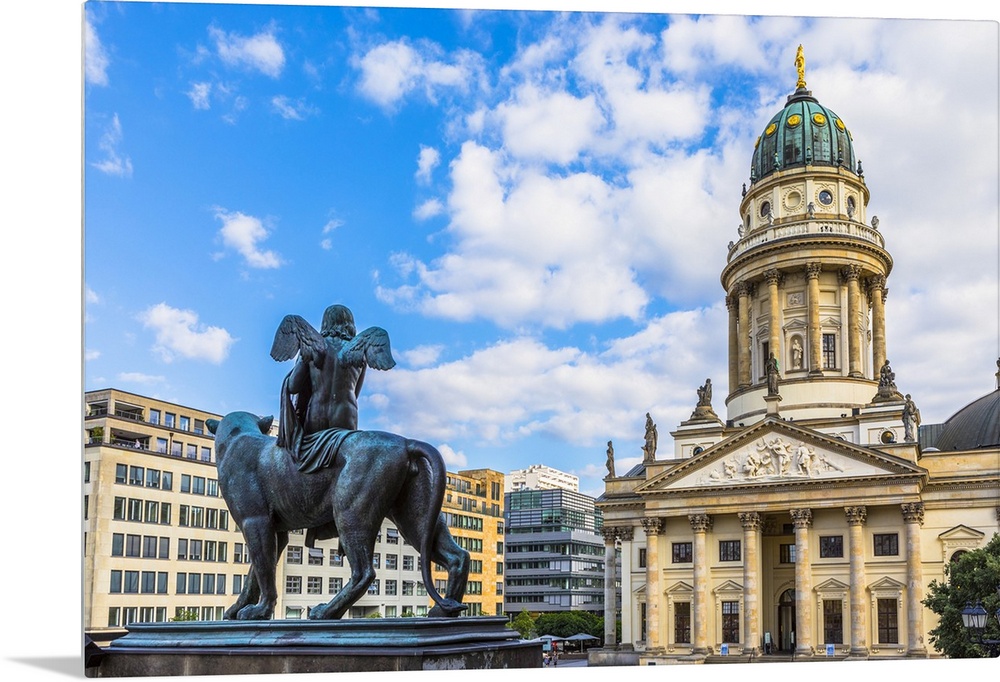 <p>Germany, Berlin, Berlin Mitte, Gendarmenmarkt, Deutscher Dom, View of Deutscher Dom from the Concert Hall in Gendarmenmarkt</p>