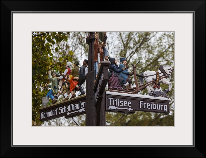 <p>Germany, Black Forest, Lenzkirch, traditional wooden road signs.</p>