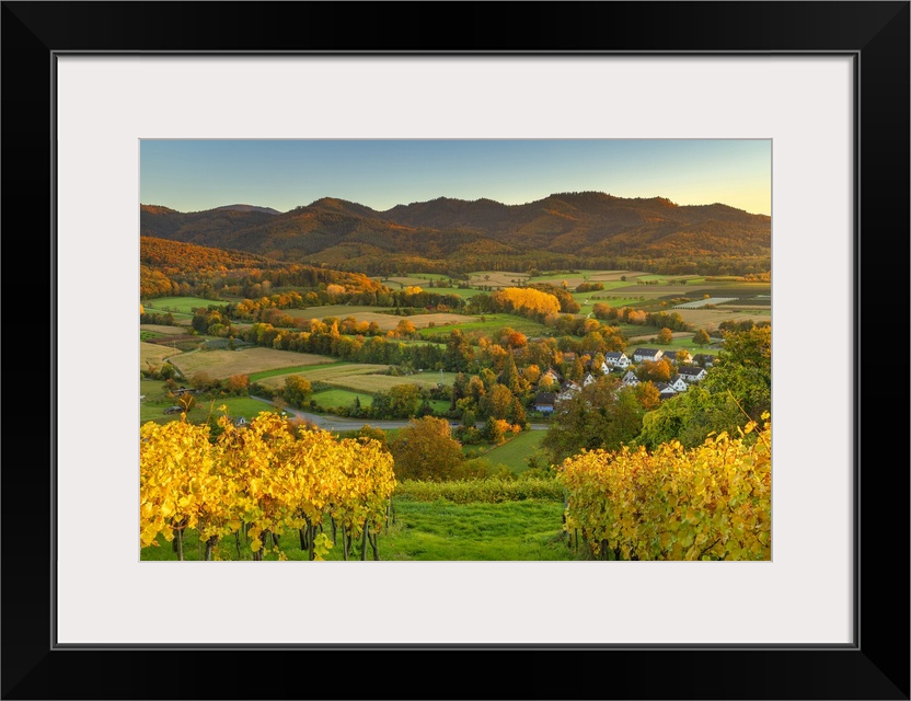 <p>Germany, Baden-Wurttemberg, Black Forest, Ehrenkirchen, Markgraflerland, Vineyards in autumn near Ehrenstetten, part of Ehrenkirchen.</p>