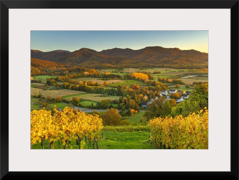 <p>Germany, Baden-Wurttemberg, Black Forest, Ehrenkirchen, Markgraflerland, Vineyards in autumn near Ehrenstetten, part of Ehrenkirchen.</p>
