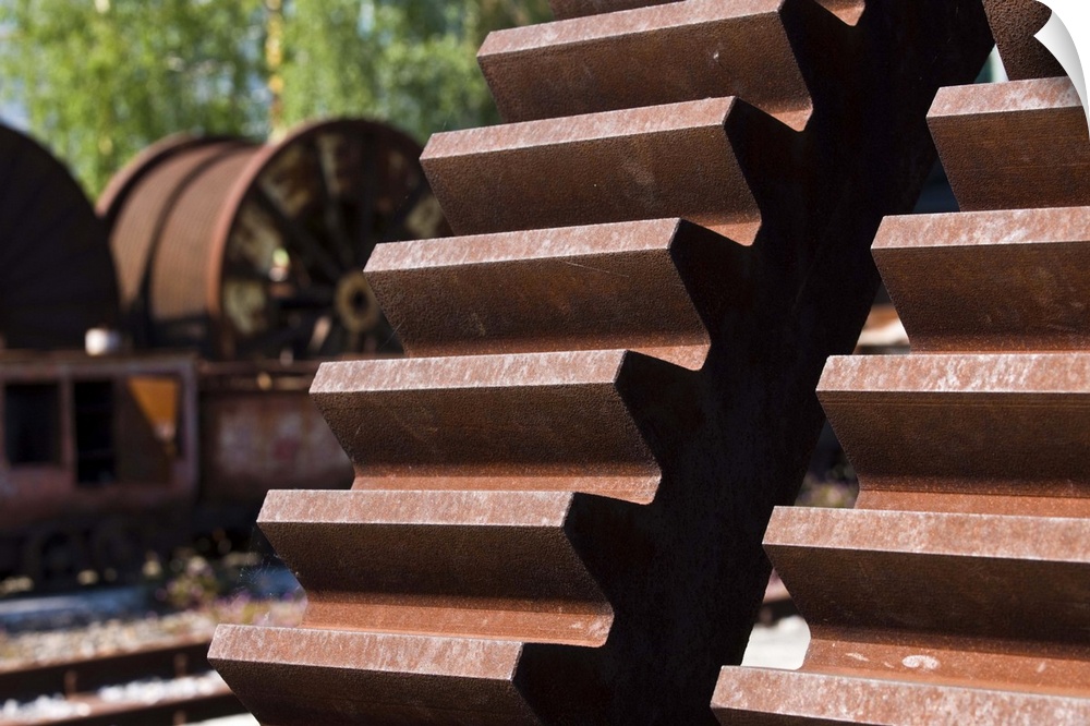 <p>Germany. Nordrhein-Westfalen, Ruhr Basin, Dortmund. LWL Industrial Museum, Zollern Colliery, gears and wheels.</p>