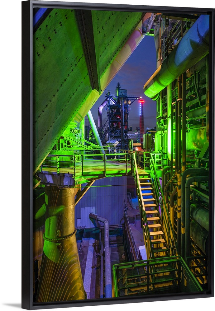 <p>Germany, North Rhine-Westphalia, Ruhr Area, Duisburg, Blast Furnace 5 complex illuminated at night, North Duisburg Landscape Park.</p>