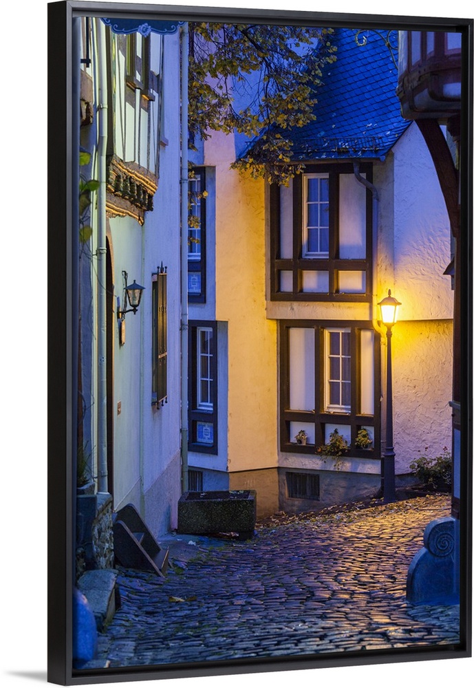 <p>Germany, Hesse, Limburg an der Lahn, traditional half-timbered building at dawn.</p>