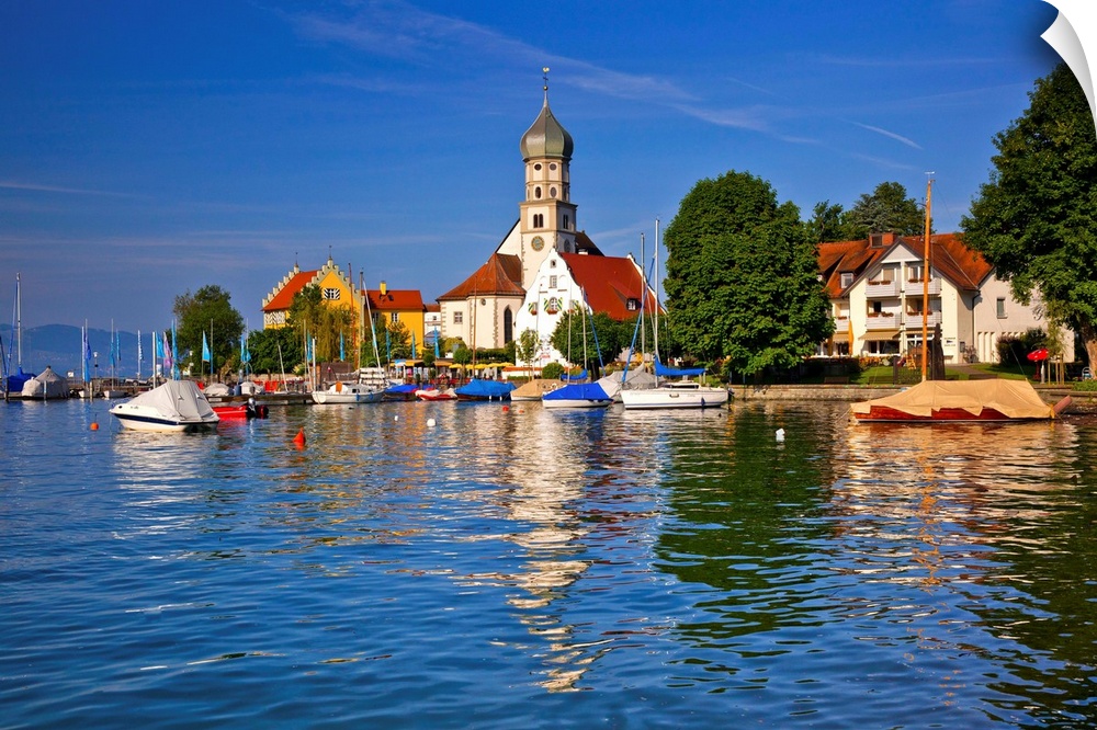 <p>Germany, Bavaria, Lake Constance, Swabia, Schwaben, Wasserburg, St George's Church.</p>