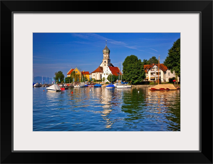 <p>Germany, Bavaria, Lake Constance, Swabia, Schwaben, Wasserburg, St George's Church.</p>