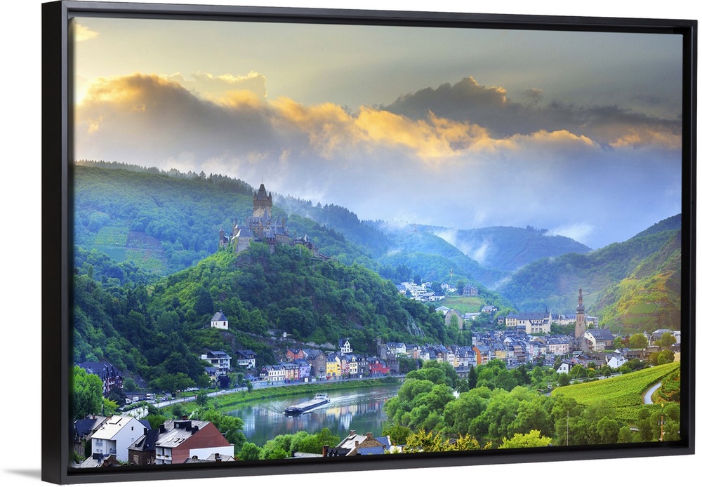 <p>Germany, Rhineland-Palatinate, Moselle Valley, Moselle Wine Route, Cochem, Cochem Imperial Castle and Moselle River.</p>