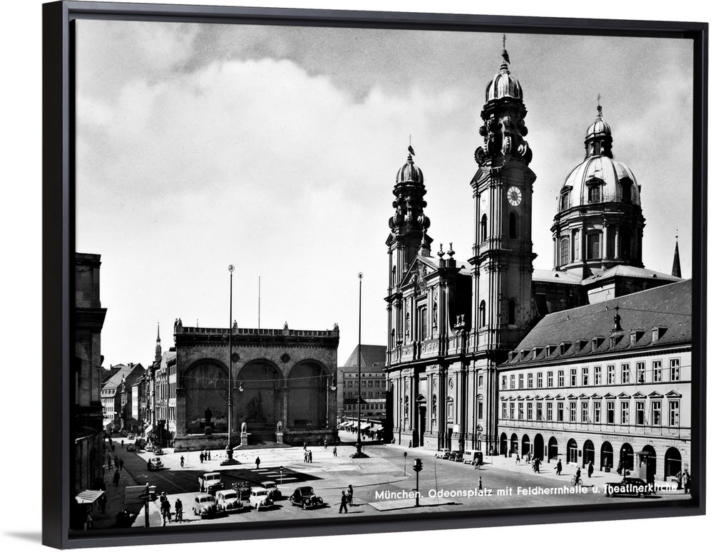 <p>View of the Odeonsplatz in Munich, Germany, including the Hall of Generals (rear) and the Theatine Church (right). Photographed 1930s.</p>