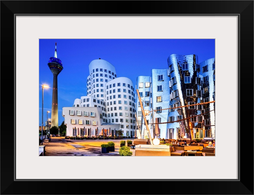 <p>Germany, North Rhine-Westphalia, Dusseldorf, Neuer Zollhof by Frank Gehry in Dusseldorf Media harbor.</p>