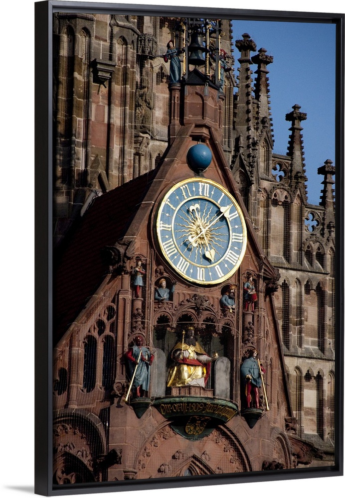 <p>Germany, Bavaria, Nuremberg. Market Square, Our Lady's Church facade (aka Frauenkirche), circa 1349. Famous clock, Mannleinlaufen.</p>